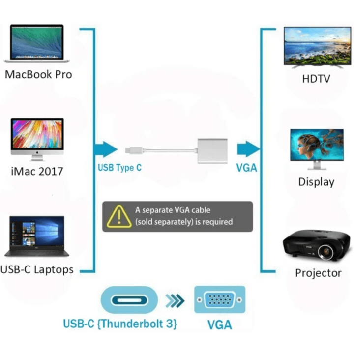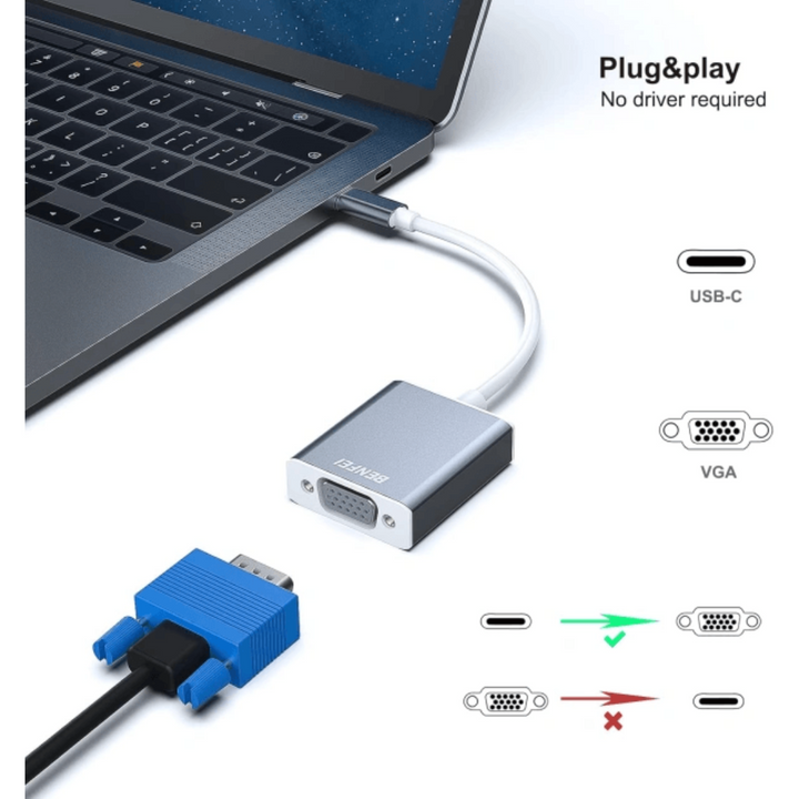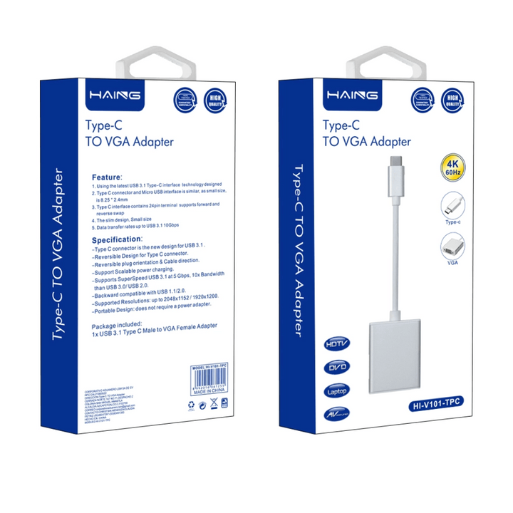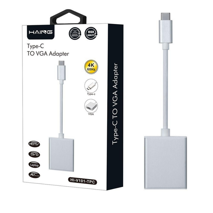 محول من نوع C إلى VGA من Haing | دقة 1080 بكسل عالية الدقة، تصميم من الألومنيوم الفاخر