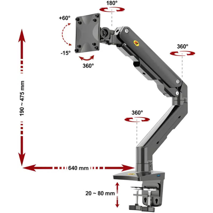 NB G50 Ergoflex Monitor Desk Mount 27"- 45"– Gas-Strut Full Motion Arm